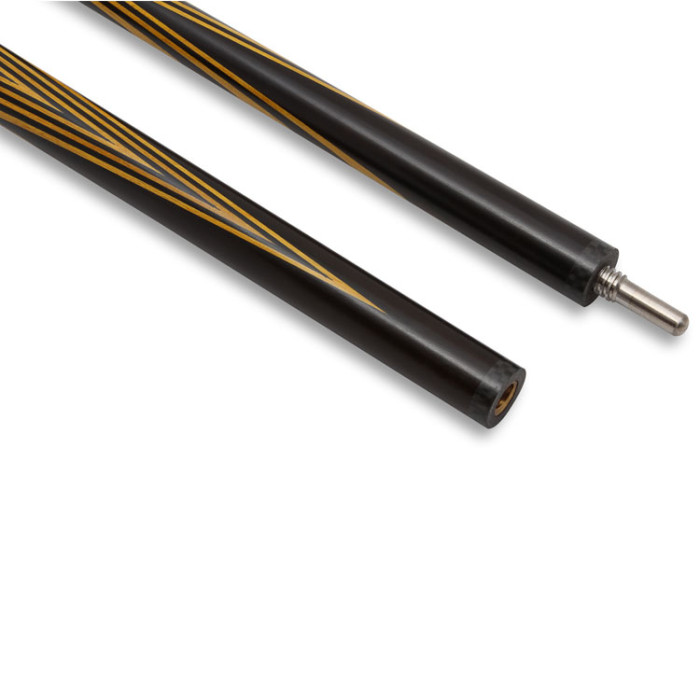 Узор выполнен из сочетания двух пород древесины – прочного черного граба и декоративной износостойкой древесины лимона. Подобное слияние черного и желтого цветов придает кию оригинальный внешний вид.