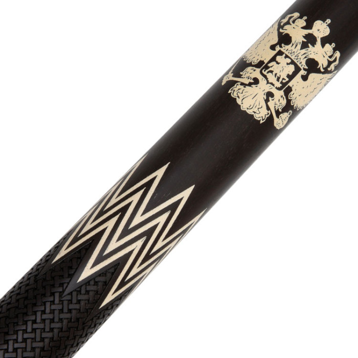 Кий для русского бильярда Каюков Мастер Герб РФ чёрный граб плетенка корона 2-составной