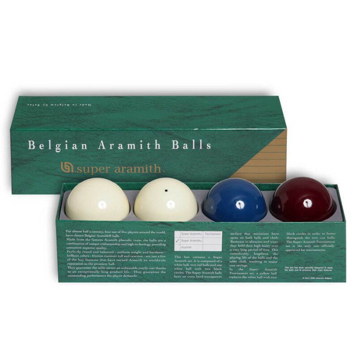 Комплект из четырех шаров для карамболя - наиболее сложной разновидности бильярда - от бельгийского производителя Saluc S.A. Диаметр шаров 61,5 мм.